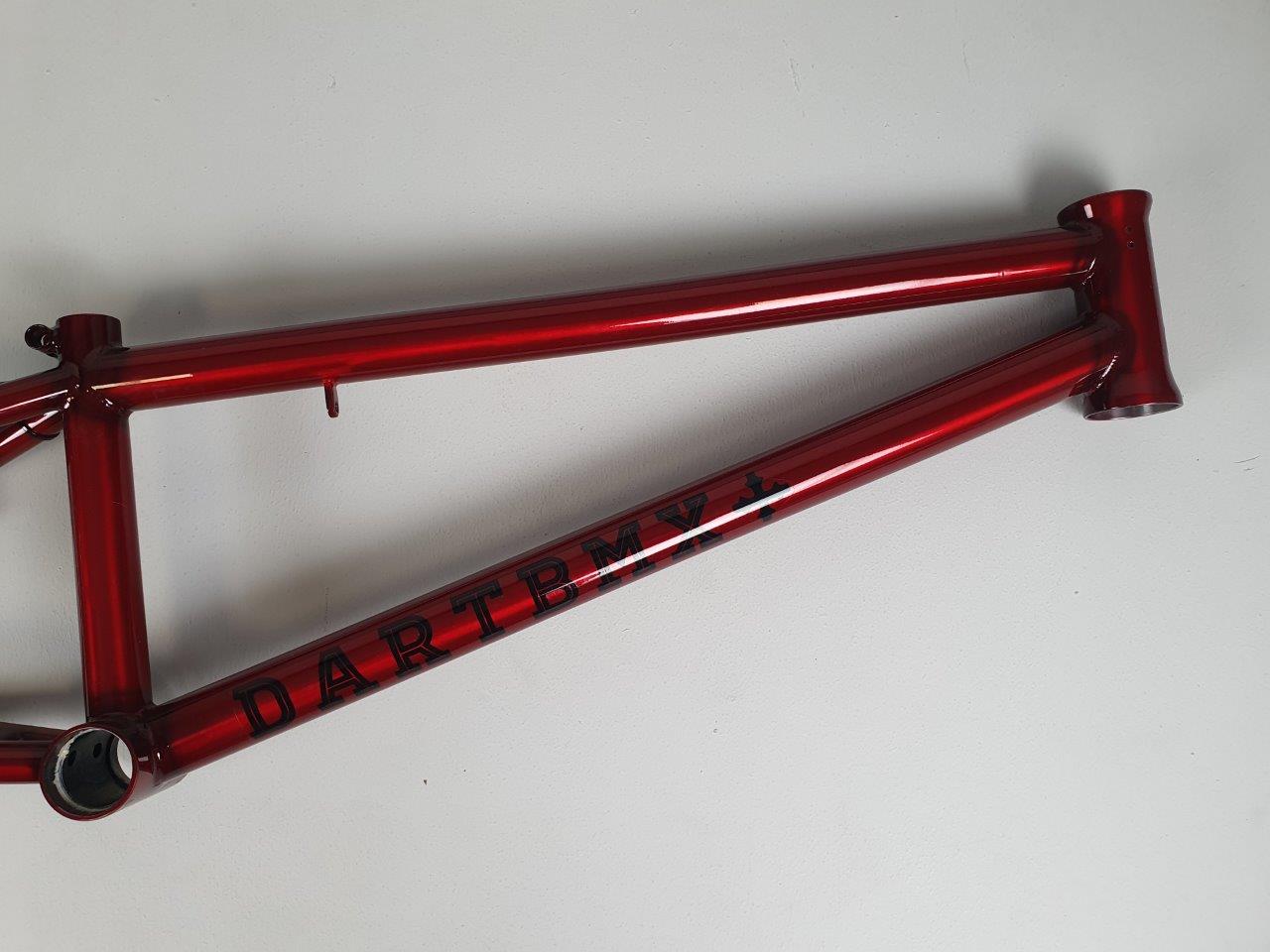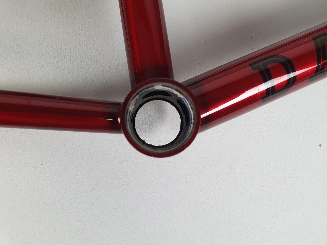 rama: Rikku, 100% Cr-Mo 4130, główna rura (TT) 20.6", Tylny trójkąt: 13,5”; Rurka podsiodłowa: 8,25”; Kąt główki: 75°; Kąt rurki podsiodłowej: 71°, zintegorwany zacisk podsiodłowy